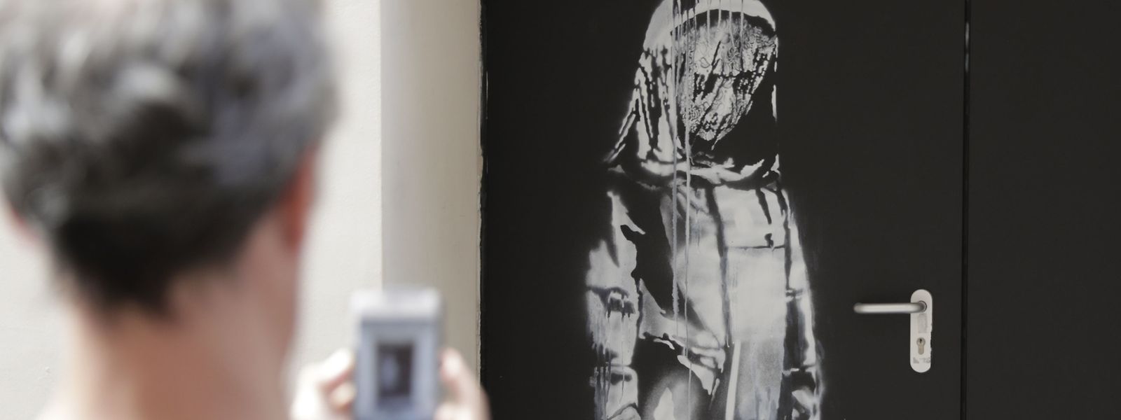 Banksy oeuvre bataclan. Loeuvre hommage du street artiste bansky a lattentat du bataclan de novembre 2015 a. Loeuvre de banksy sur une porte du bataclan etait un hommage aux victimes du 13 novembre 2015. Thomas samson afp.