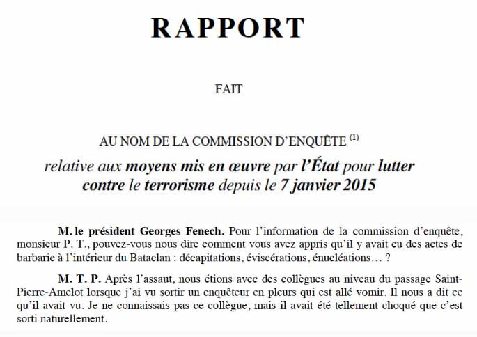 Bataclan victimes egorgees. According to this testimony wahhabist killers apparently gouged out eyes castrated victims and shoved their testicles in their mouths. The investigations chair conservative lawmaker georges fenech complained to the commission that details of the mutilations have been kept from families and the press according to an online. How the dads of the bataclan terrorist and one of his victims forged a bond after the 2015 paris.