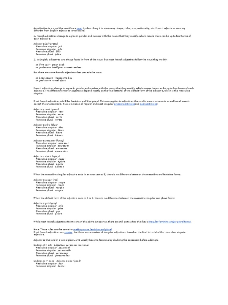 Beau nouveau vieux have different plural forms for masculine and feminine adjectives tom est beau mais henri et bob sont tres beaux. It is pronounced like bell. Beau masculine singular before vowel bel feminine singular belle masculine plural beaux feminine plural belles handsome fine attractive.