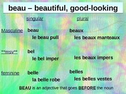 Be word forms. In another oddity of the french language belle is technically not its own word. French translation of beau.