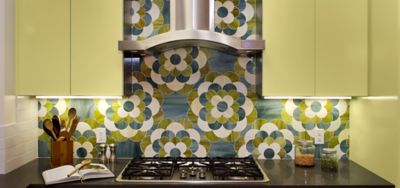 Expanding on our ever popular beau monde stone mosaic program we are proud to offer a variety of beautiful patterns in exquisite art glass. Browse all ceramic stone glass porcelain and concrete products. This kitchen backsplash looks hand painted but its actually made of shimmery pearlescent glass tile.