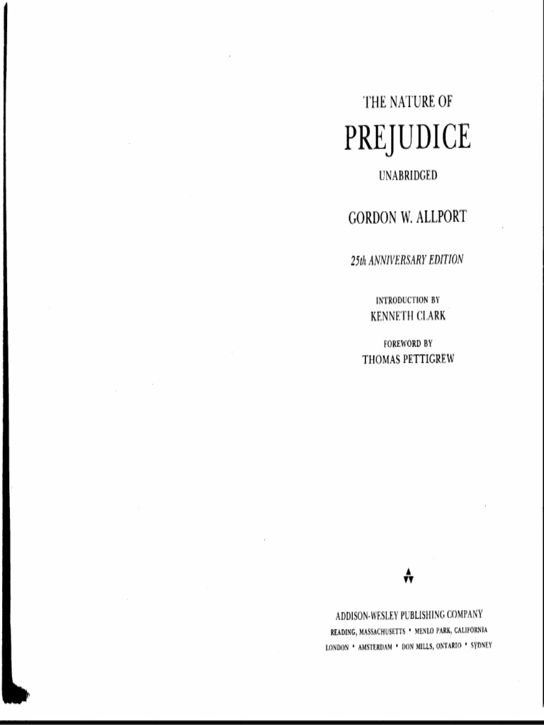 Allports the nature of prejudice is one of the most influential works ever written in the field of psychology. Antilocution speaking against means making. Gordon allports the nature of prejudice irwin katz gordon allports landmark book the nature of prejudice defined the field of intergroup relations for social psychologists as the study of prejudice and its effects on group interactions.