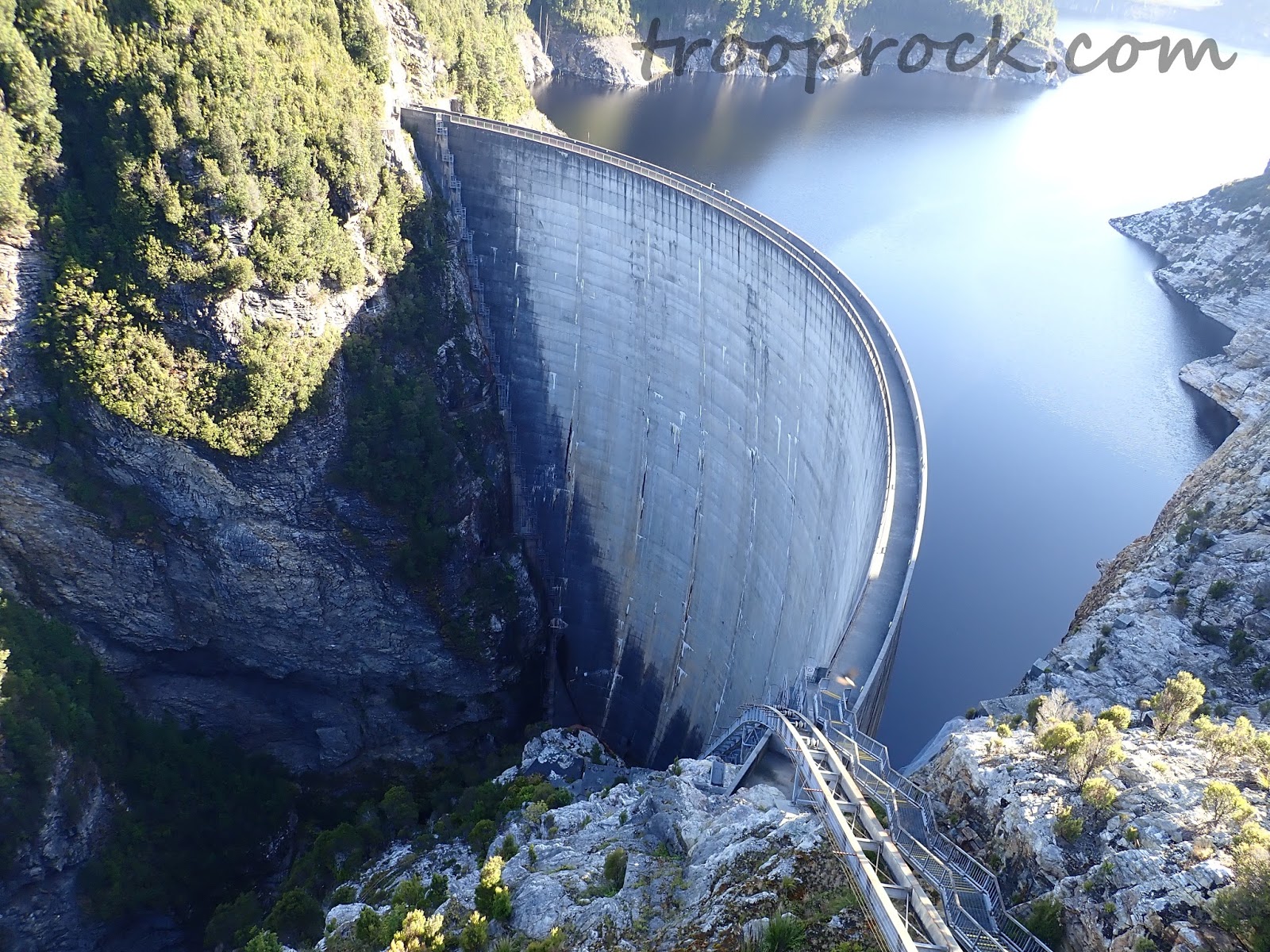 The gordon dam is usually seen as a source of electricity however phil harris sees it as a source of excitement. The dam wall contains over 154000 cubic metres of concrete. The dam is located near strathgordon in the heart of tasmanias magnificent south west wilderness.