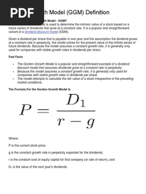 Gordon Model Of Dividend Formula