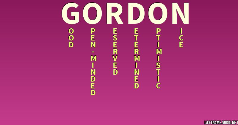 It is uncertain if this surname originated from a place name in scotland or in france. What does gordon mean. The name gordon is a boys name of scottish origin meaning great hill.