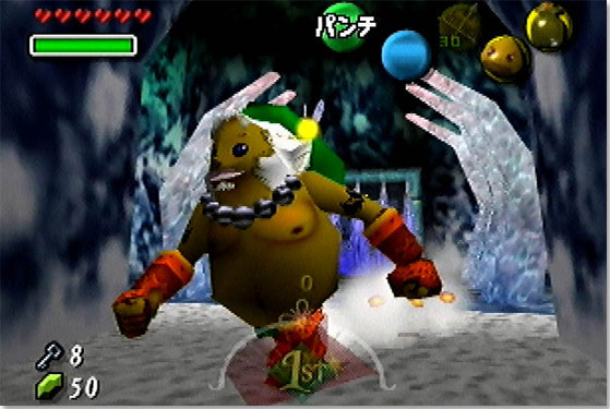 When wearing it link is transformed into goron link. Wear this mask to turn into a goron and read darmanis tombstone to learn about your new abilities as a goron. In this form the hero can smash boulders and curl up into a ball to travel at rapid speeds.