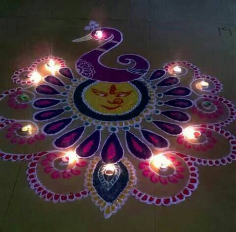 Diwali special peacock rangoli design by deepika pant.