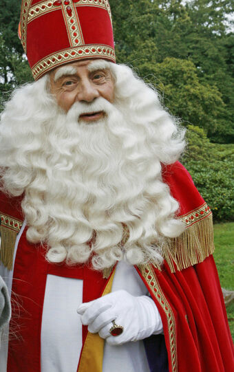 Sinterklaas ook sint nicolaas sint of de goedheiligman is de hoofdpersoon van het sinterklaasfeest dat op 5 december in nederland en in enkele voormalige nederlandse kolonien en op 6 december in belgie wordt gevierd. He wears a long red cape or chasuble over a traditional white bishops alb and a sometimes red stole dons a red mitre and ruby ring and holds a gold coloured crosier a long. Sinterklaas also sint nicolaas or just sint is the dutch counterpart to santa claus and in fact formed the basis for the westernized santa.