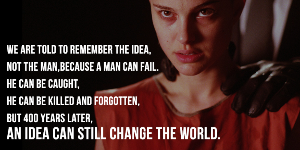 V for vendetta quotes v. We are told to remember the idea not the man because a man can fail. As brave as gordon deitrichs martyrdom is at least one v for vendetta fan believes gordon was far more of a hero than we thought and may have been directly involved in bringing v and evey together.